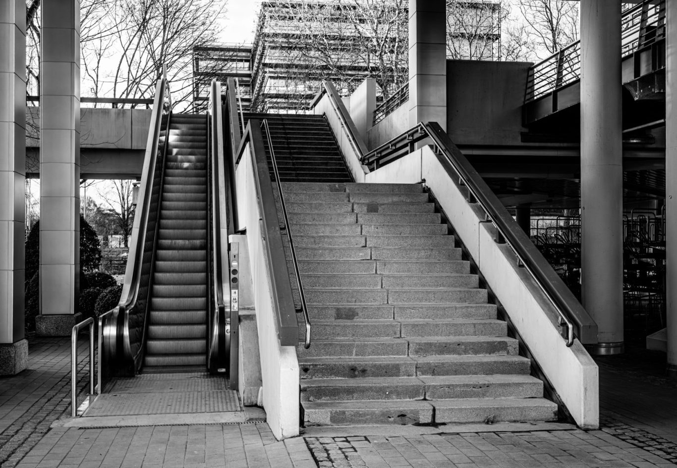 Photographed in Hamburg, this chapter reflects on the choreography of contemporary urban space. Infrastructure continues to direct circulation, but perception must operate within conditions that are only partially legible. What emerges is not disorientation in a dramatic sense, but a quieter state in which movement continues — guided by structures whose authority is assumed rather than fully perceived.